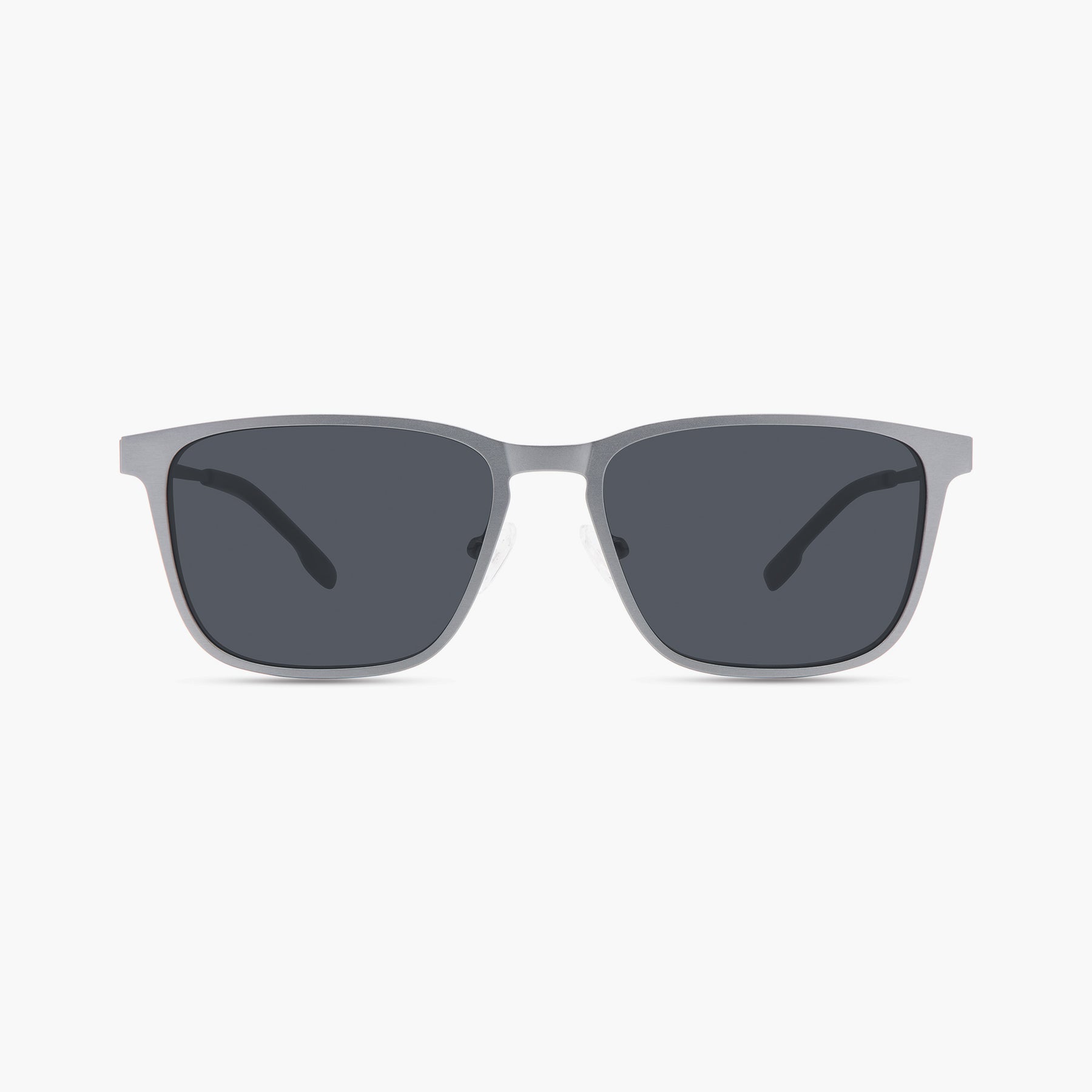 A clean rectangular silhouette with an easy, everyday look. The recycled aluminum build keeps it ultra light, while the satin surface gives it a cool, refined touch. Add the magnetic polarized clip-ons and Helios is ready for sunshine in a second.